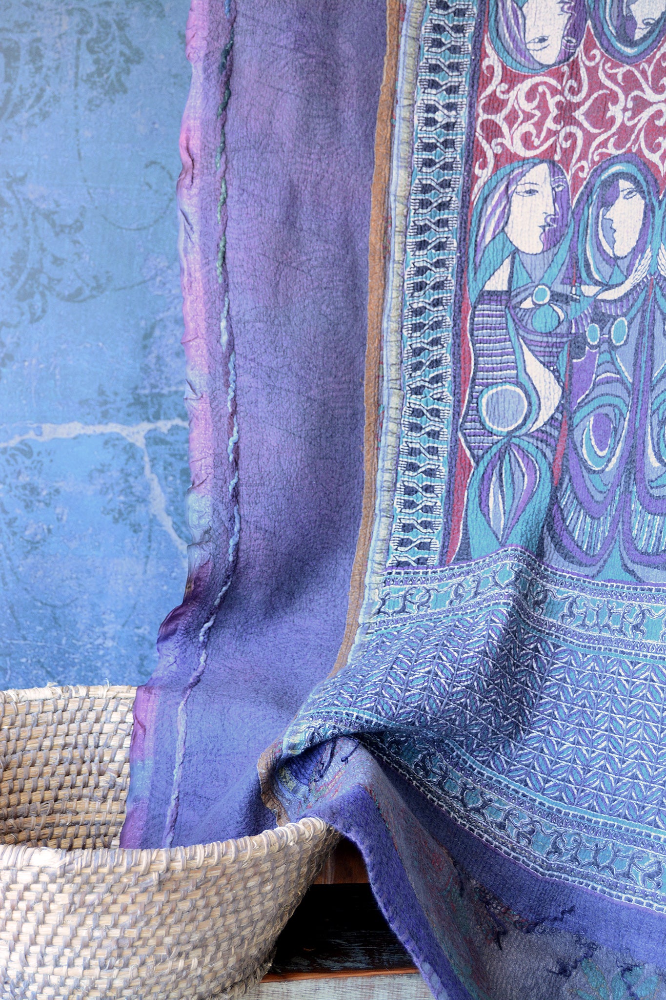 Cosset & Lock Silk and Wool Textiles are made using a unique process of felting to marry together the strength, beauty, and qualities of silk and wool natural fibers. Because I use repurposed sarees, and due to the handmade process, every blanket has unique characteristics and distinctive occurrences.