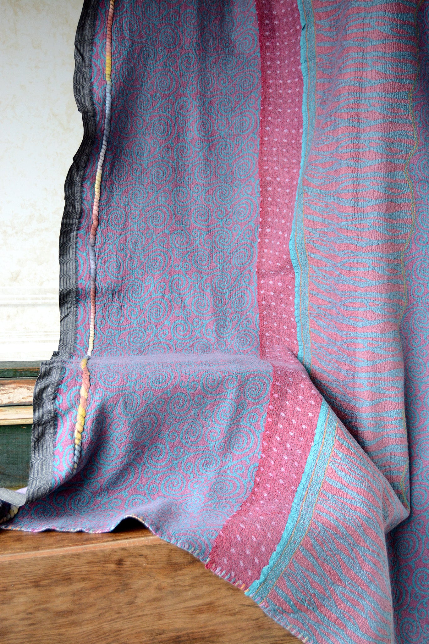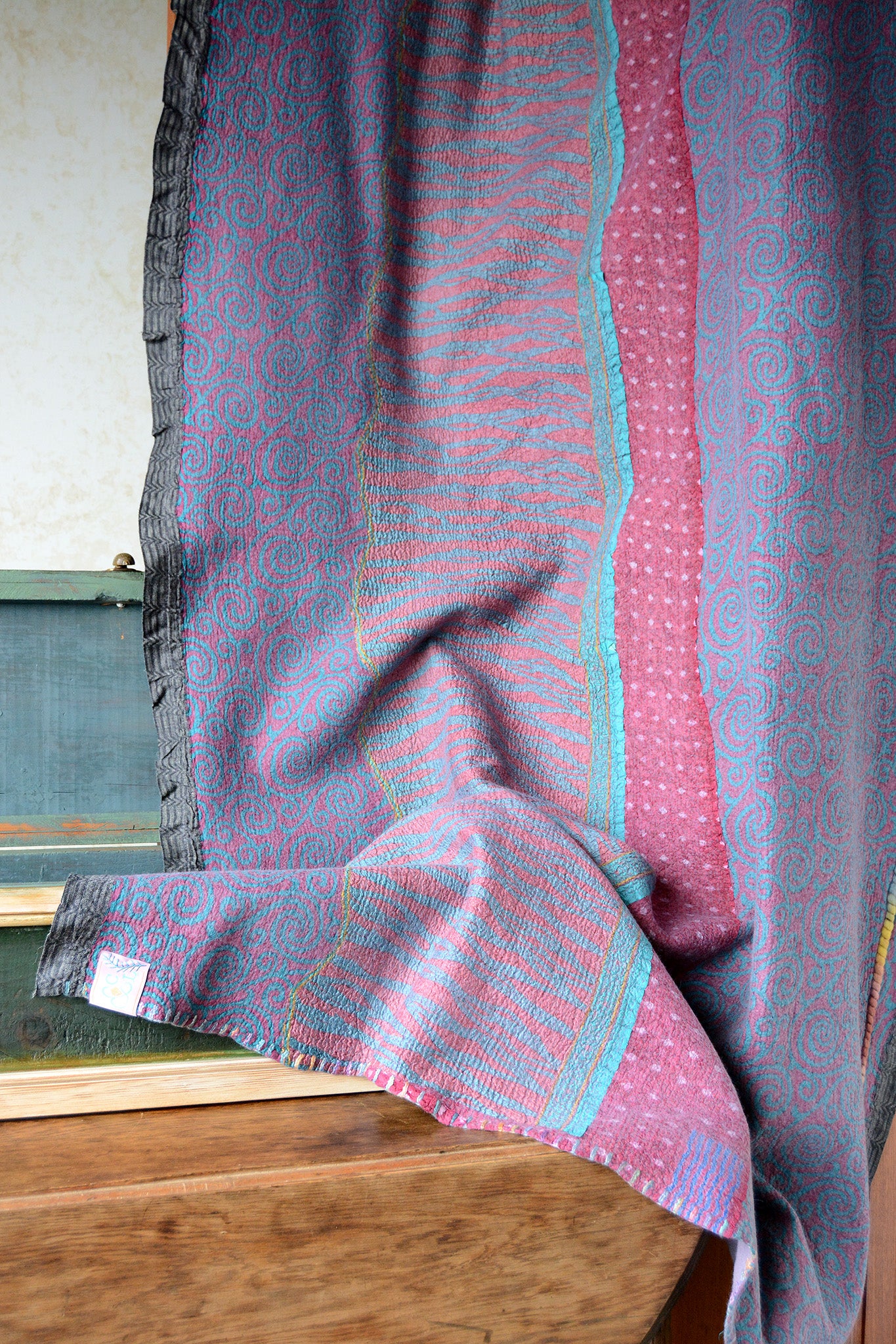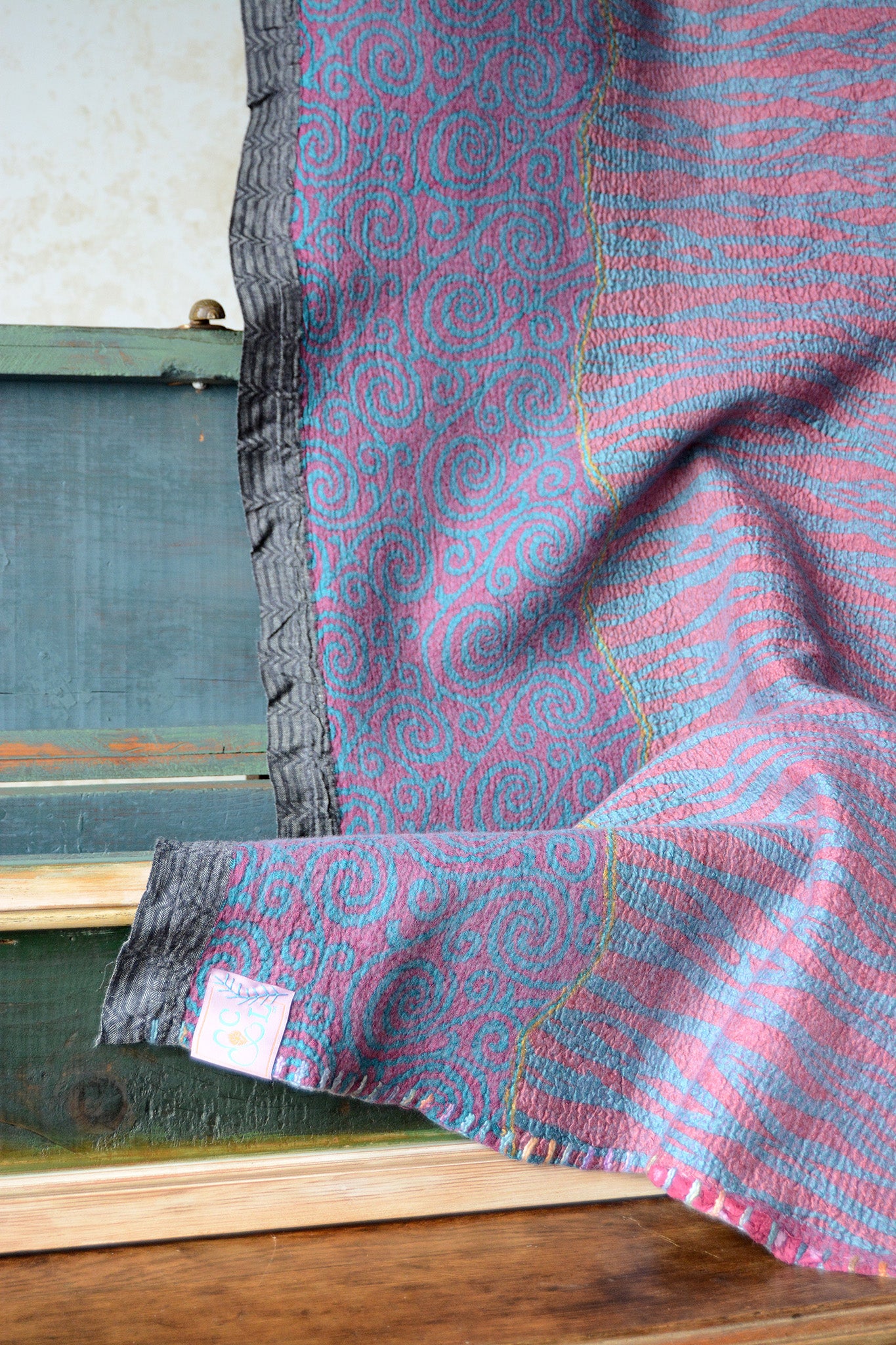 Cosset & Lock Silk and Wool Textiles are made using a unique process of felting to marry together the strength, beauty, and qualities of silk and wool natural fibers. Because I use repurposed sarees, and due to the handmade process, every blanket has unique characteristics and distinctive occurrences.
