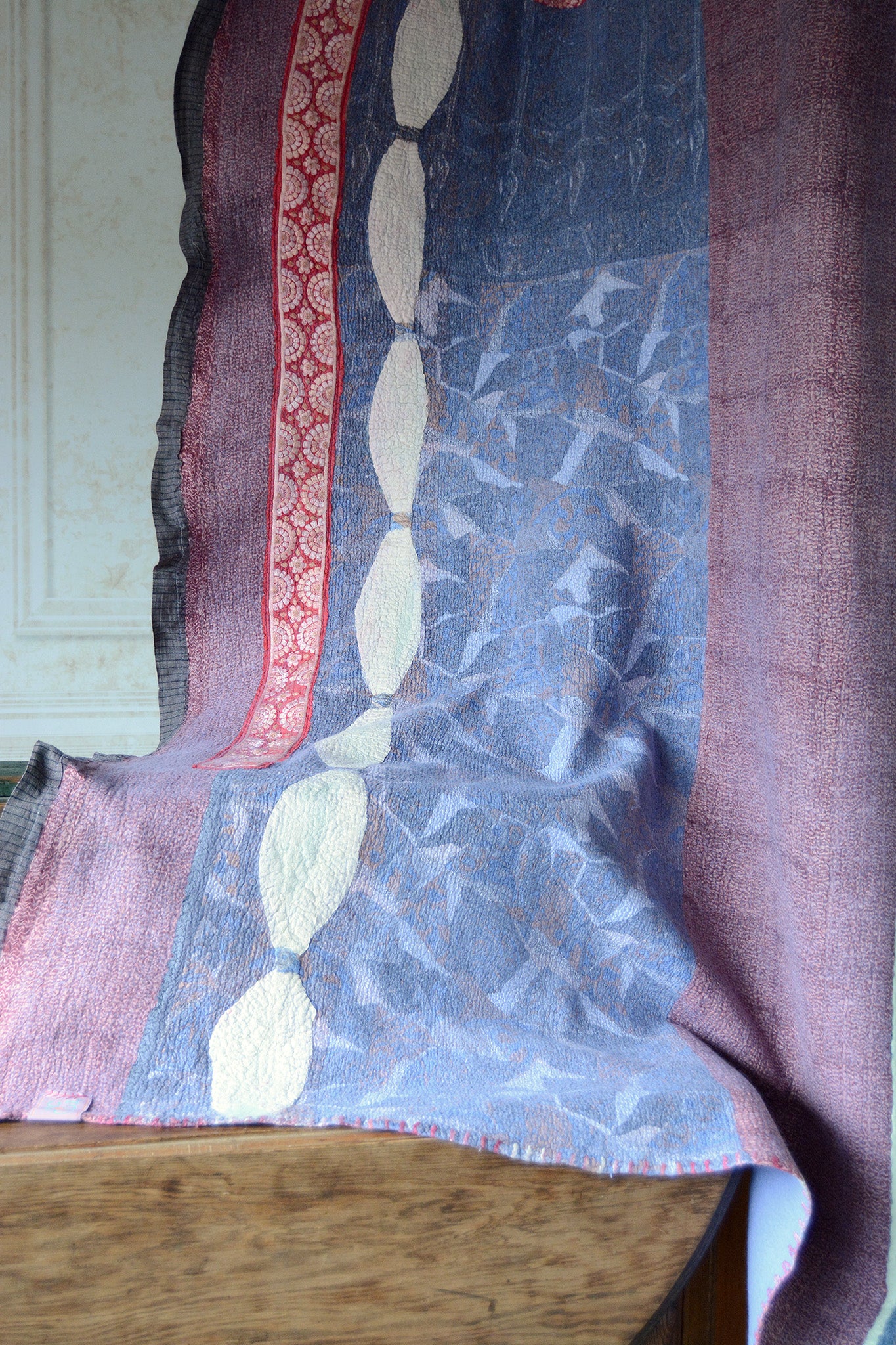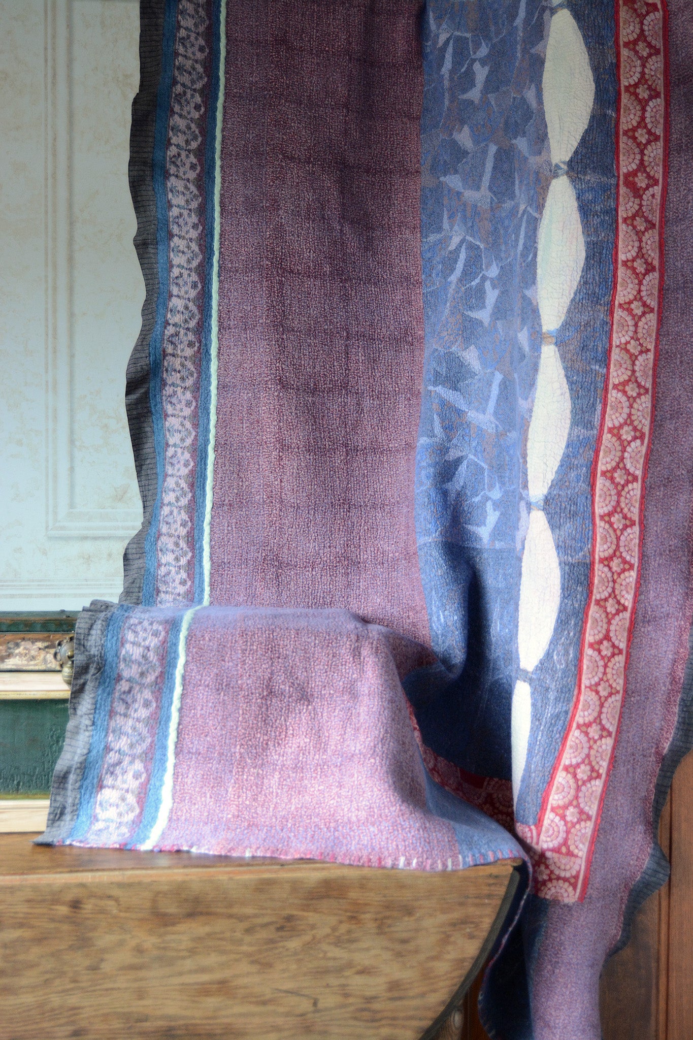 Cosset & Lock Silk and Wool Textiles are made using a unique process of felting to marry together the strength, beauty, and qualities of silk and wool natural fibers. Because I use repurposed sarees, and due to the handmade process, every blanket has unique characteristics and distinctive occurrences.