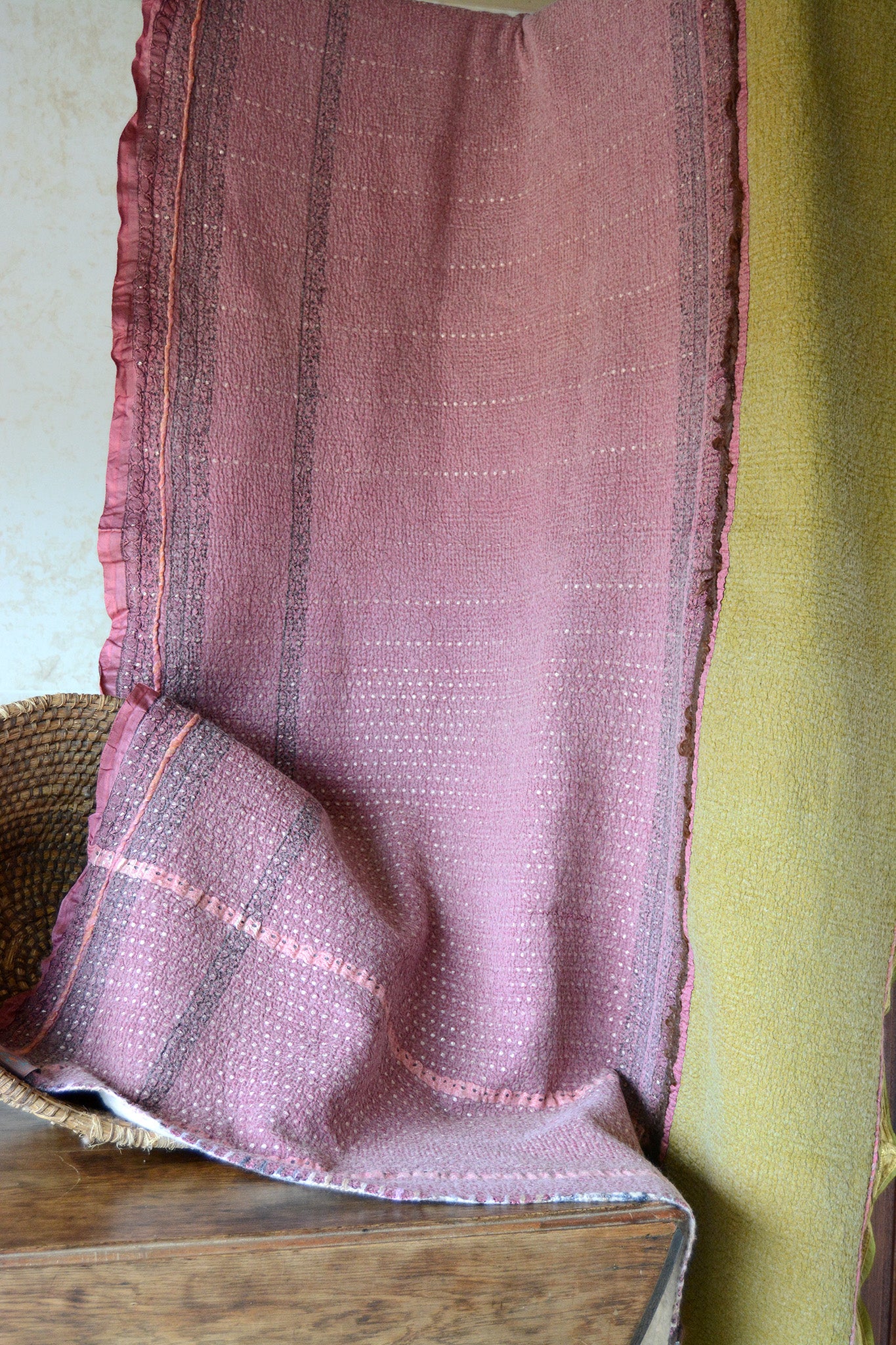 Cosset & Lock Silk and Wool Textiles are made using a unique process of felting to marry together the strength, beauty, and qualities of silk and wool natural fibers. Because I use repurposed sarees, and due to the handmade process, every blanket has unique characteristics and distinctive occurrences.