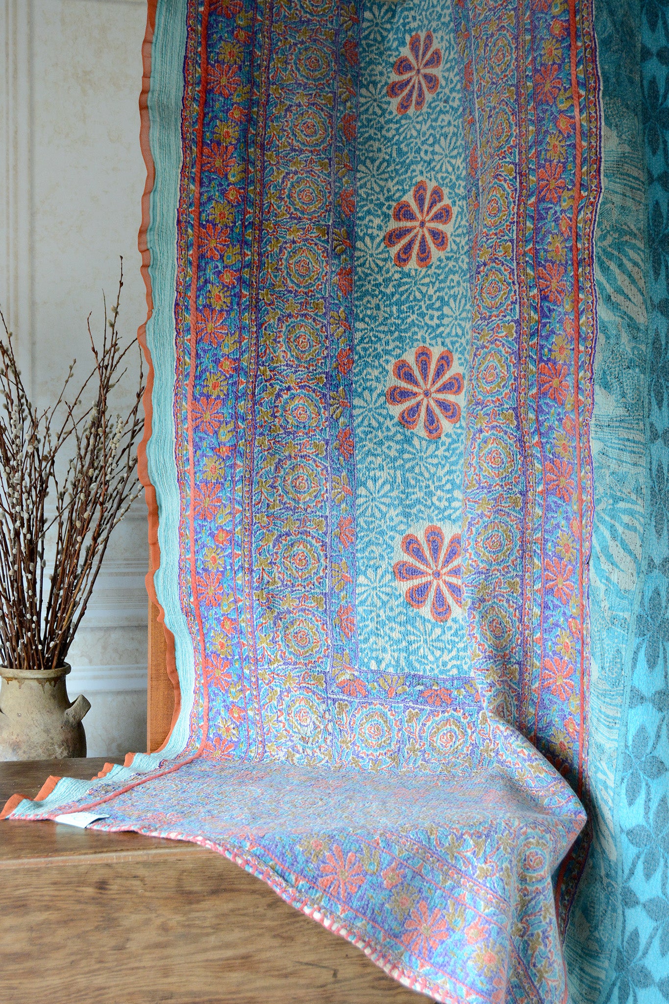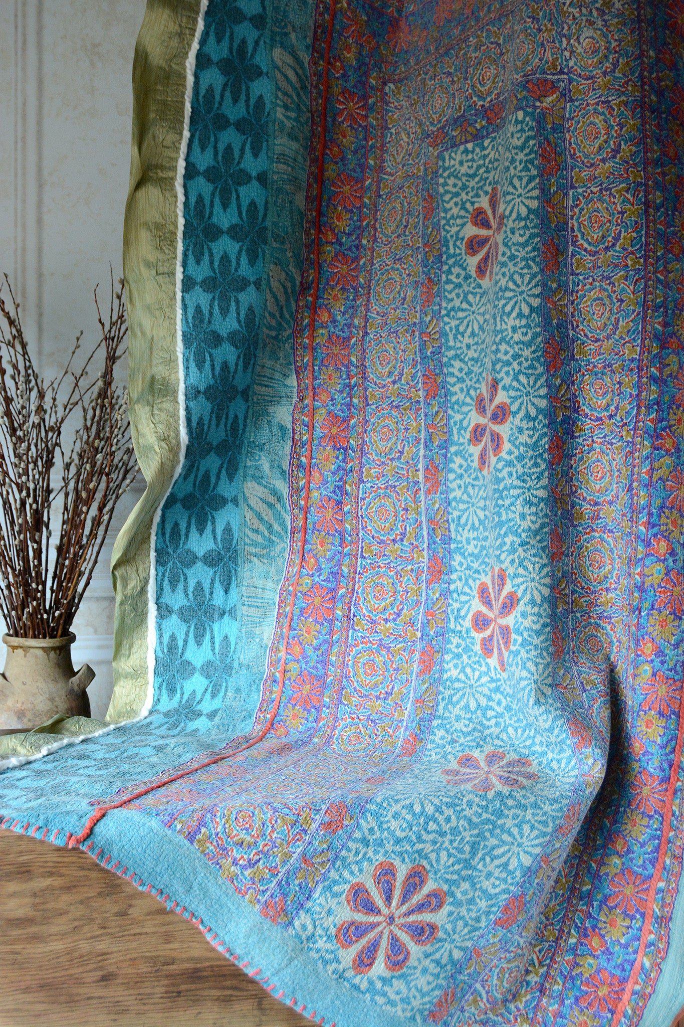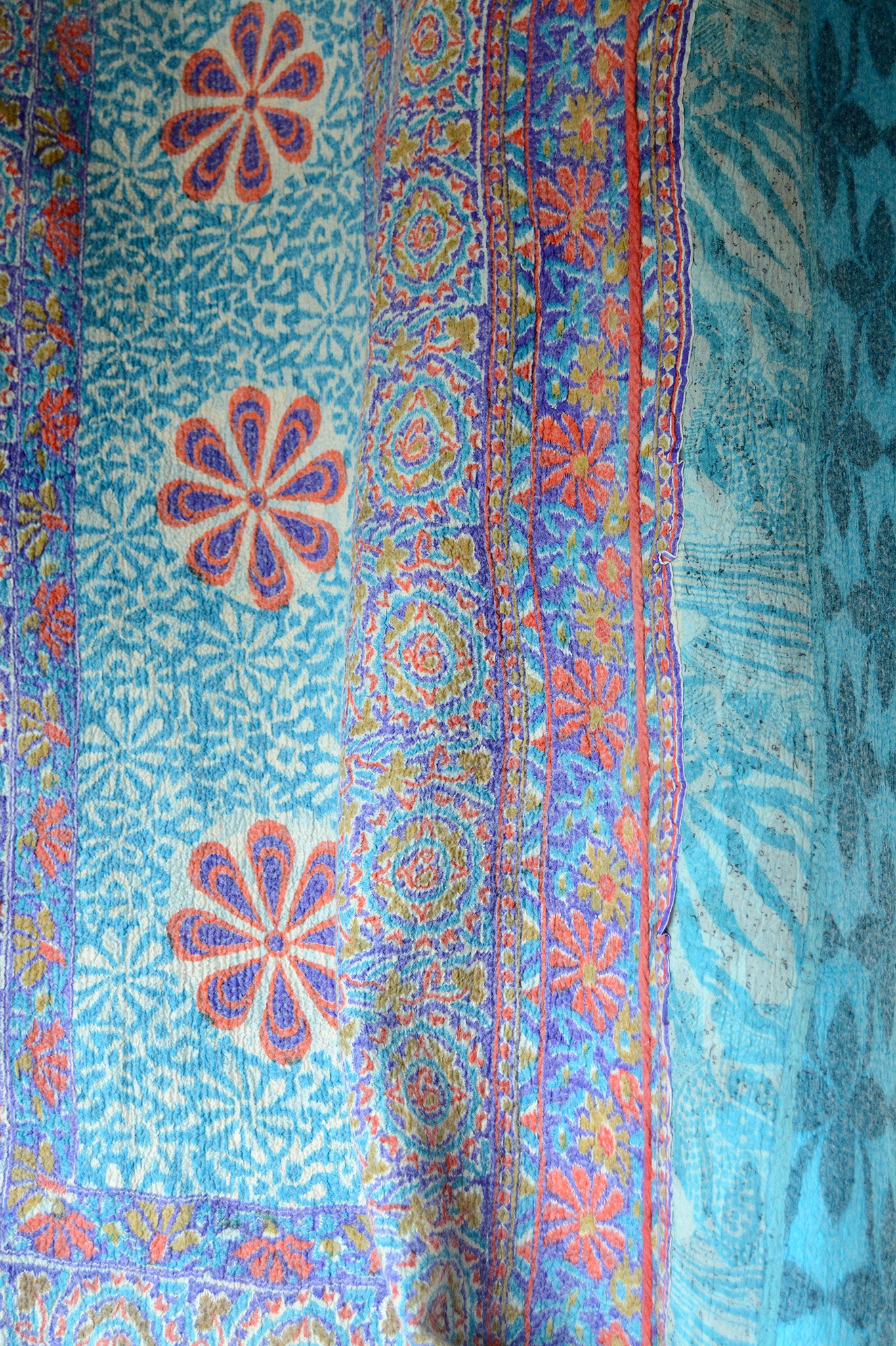Cosset & Lock Silk and Wool Textiles are made using a unique process of felting to marry together the strength, beauty, and qualities of silk and wool natural fibers. Because I use repurposed sarees, and due to the handmade process, every blanket has unique characteristics and distinctive occurrences.