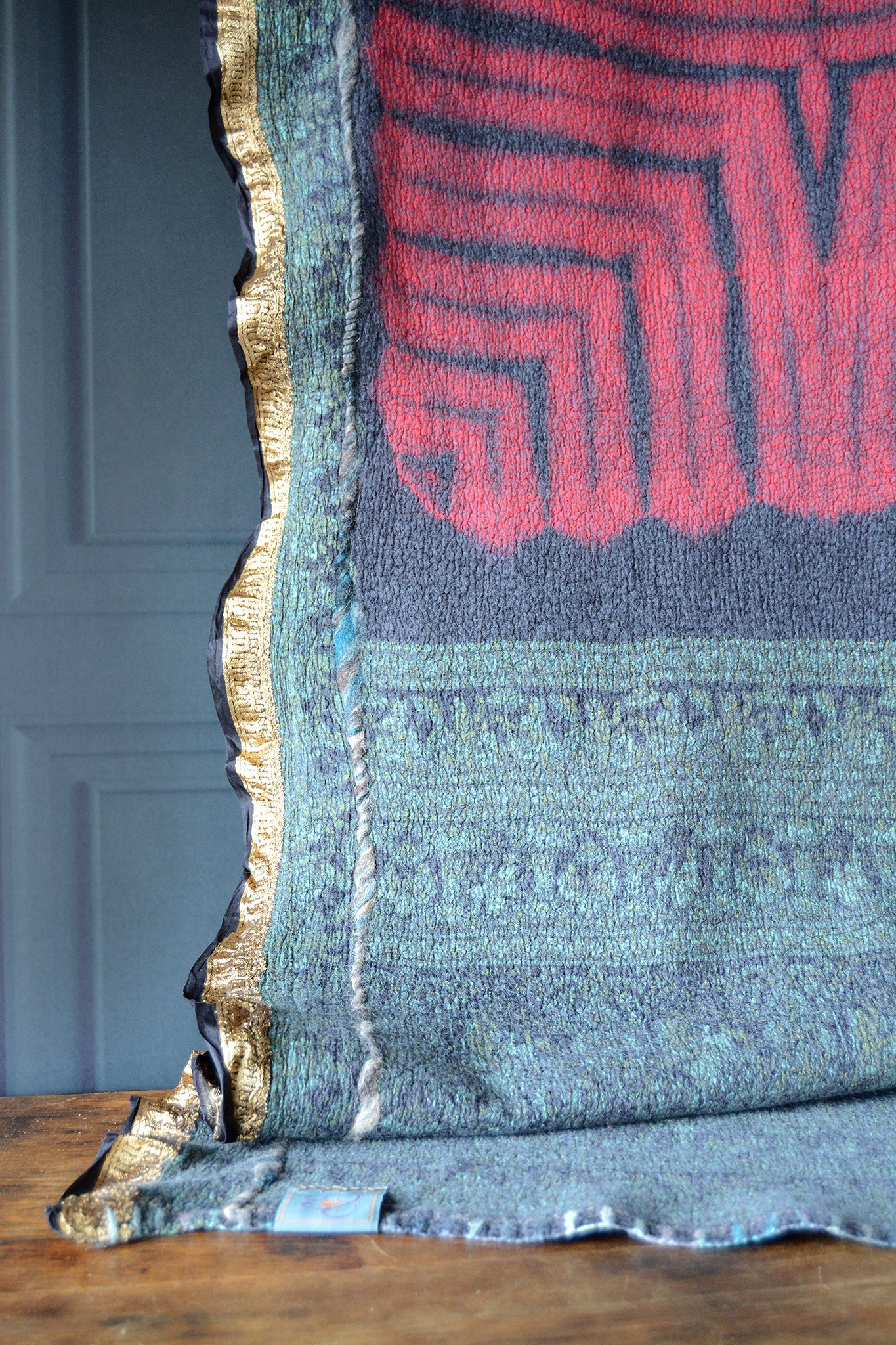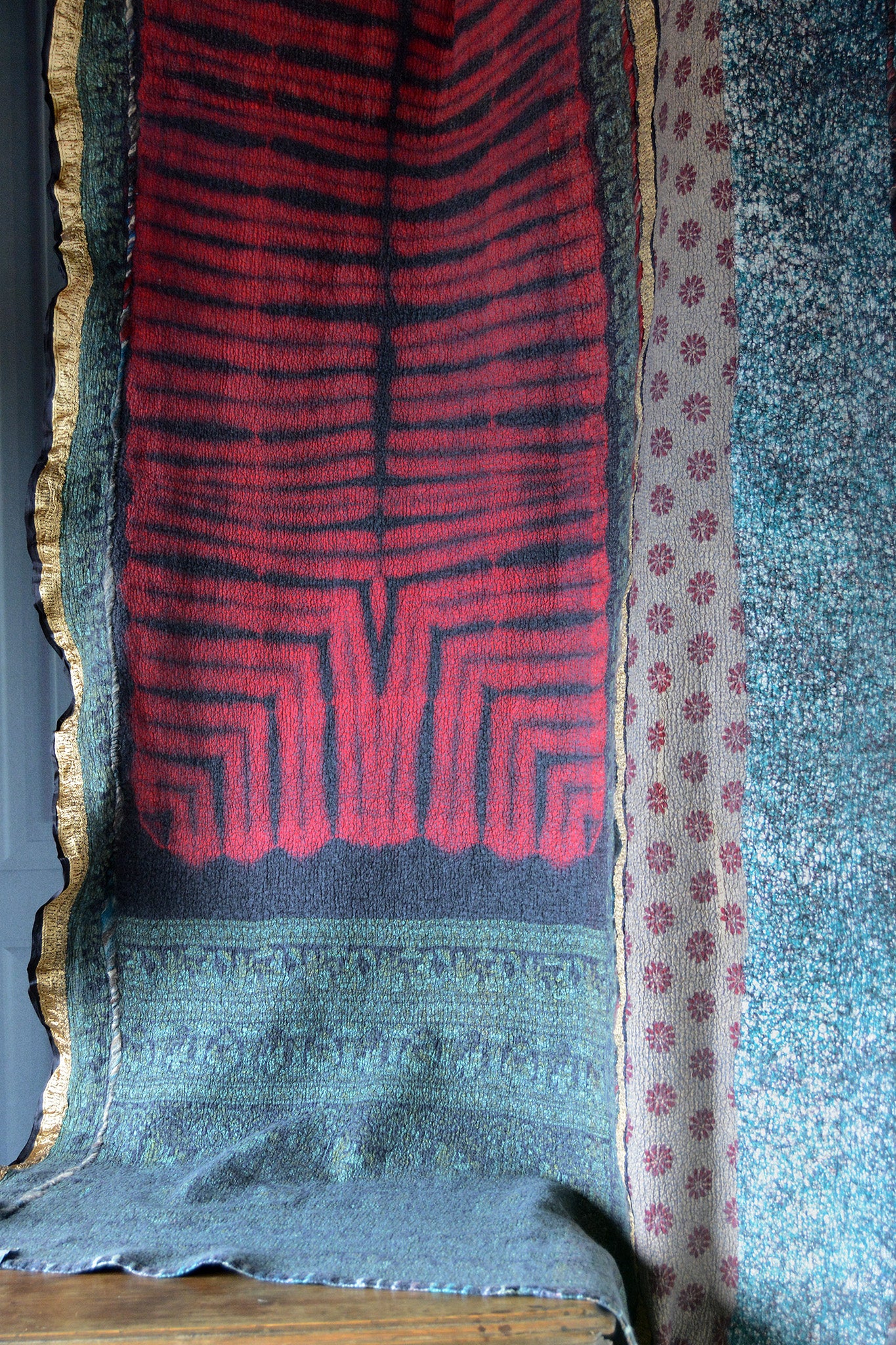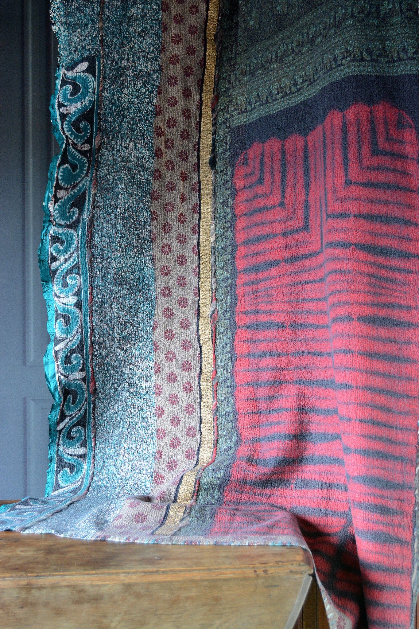 Cosset & Lock Silk and Wool Textiles are made using a unique process of felting to marry together the strength, beauty, and qualities of silk and wool natural fibers. Because I use repurposed sarees, and due to the handmade process, every blanket has unique characteristics and distinctive occurrences.